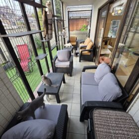 猫カフェでは、テラス席もご用意していますので、猫本来の姿を見ることができます。猫は本来外で生活する習性なので、楽しそうに生き生きとした姿を楽しむことができます。冬季は外が寒いためにテラス席を閉鎖していますが、暖かい時期は、とても心地が良く解放的にくつろいでいただけます。