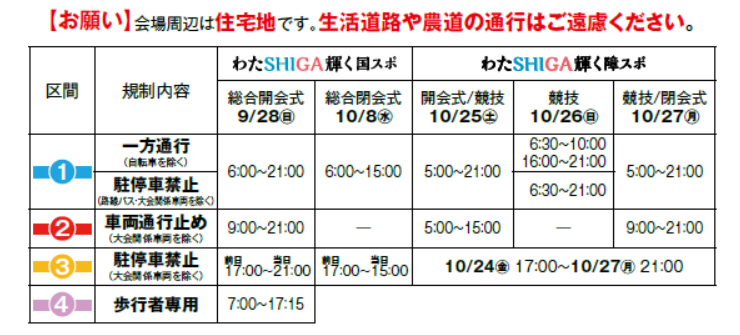 詳細な交通規制についてはこちら(わたSHIGA輝く国スポ・障スポ2025)をご覧ください。
